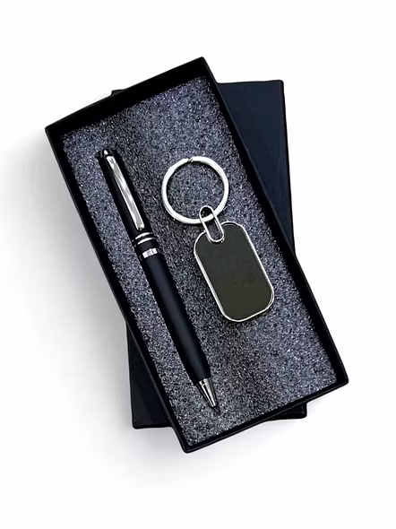 Elevate your everyday essentials with this sleek Metal Ball Pen and Mirror Finish Keychain Combo Set. Perfect for adding a touch of sophistication to your daily routine.