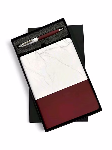 Elevate your writing experience with the exquisite 2 in 1 Dual Tone Marble Combo Set featuring a luxurious Marble Finished Diary and a stylish Metal Ball Pen. Perfect for gifting or personal use.