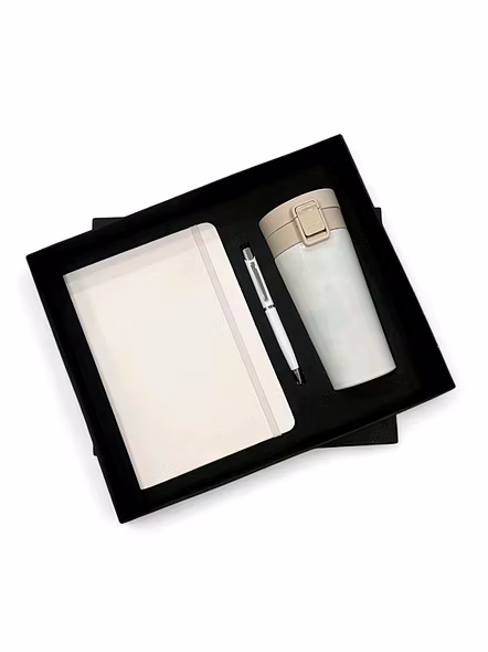 Enhance your daily productivity with our versatile 3 in 1 Combo Set featuring an elastic diary, a sleek click pen, and a stylish tumbler. Stay organized, creative, and hydrated throughout your day.