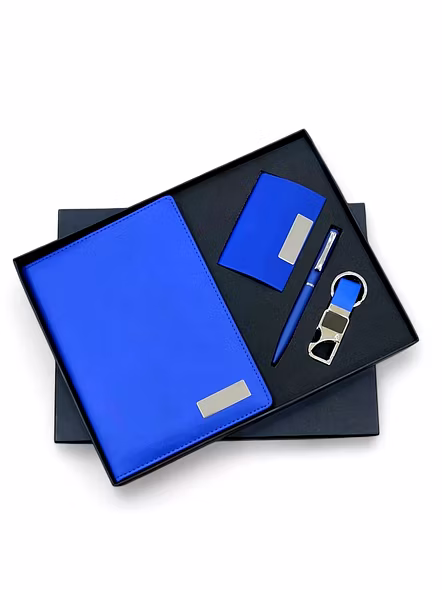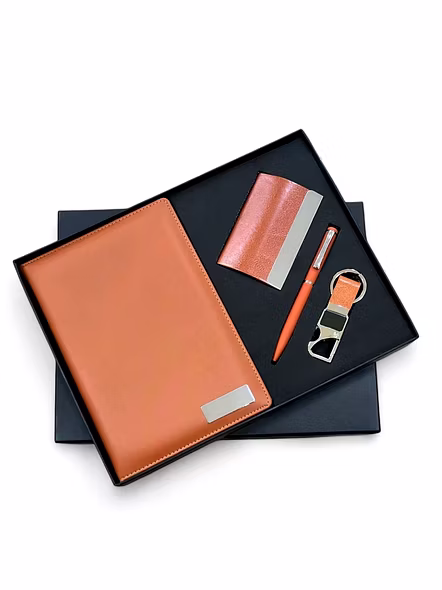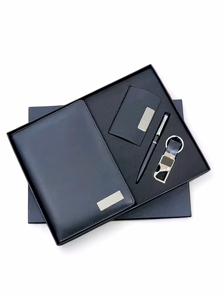 Enhance your daily essentials with this sophisticated 4 in 1 Combo Set featuring a PU Diary, Cardholder, Pen, and Hook Keychain. Stay organized and stylish with this all-in-one set.