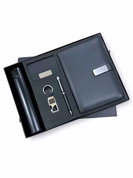 Crafted with precision and attention to detail, each item in this combo set exudes quality and durability. The Temperature Bottle is designed to withstand the rigors of daily use, keeping your beverages fresh and enjoyable. The Cardholder is not only stylish but also functional, providing a secure way to store your cards. The Hook Keychain adds a unique flair to your keys, making them easy to find in your bag or pocket. With smooth writing and comfortable grip, the Ball Pen elevates your writing experience. The Diary is your perfect companion for capturing ideas, thoughts, and memories in one convenient place.