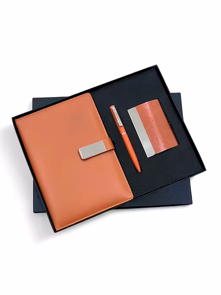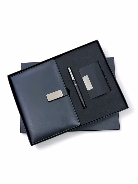 Enhance your productivity and style with this 3 in 1 combo set. Crafted from premium PU leather, this set includes a diary, a sleek pen, and a convenient cardholder.